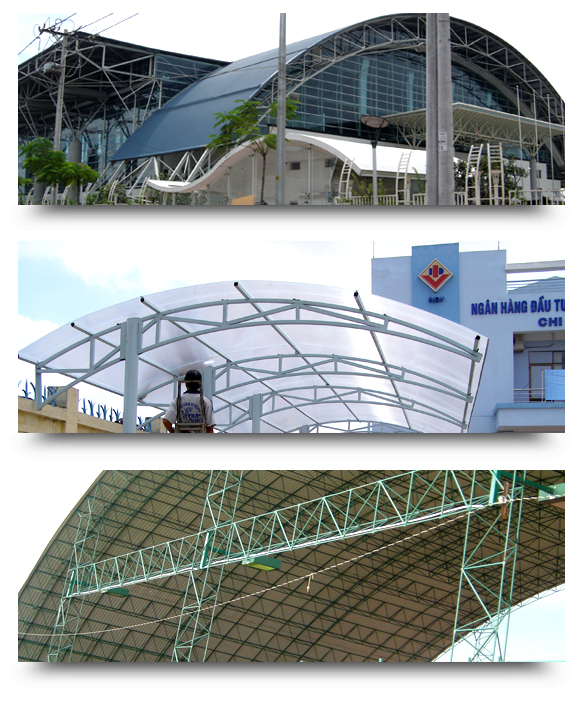 - Mái vòm, Nhà để xe, Nhà che khung sắt lợp bạt: